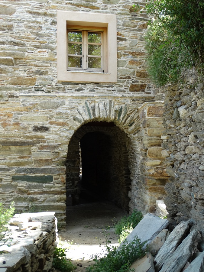 Πριν ολοκληρώσουμε αυτή την σύντομη πρώτη διαδρομή μας στον ξεχωριστό μεσαιωνικό οικισμό να ξεχωρίσουμε δύο σημεία του. Το πρώτο ήταν η μικρή χαβούζα στην αρχή. Μια μικρή στιγμή μαγείας. Μια κομφή αισθητική απόλαυση μπροστά στην υπέροχη πέτρινη καμάρα. Μια θύμηση πως η ζωή είναι γεμάτη από μικρές μοναδικές στιγμές που δεν πρέπει να τις προσπερνάμε γρήγορα κι αδιάφορα. Και η δεύτερη ένα υπέροχο ανοικτό μπαλκόνι που βλέπει πέρα από τα δέντρα στην ατέλειωτη θάλασσα. Άλλη μια υπενθύμιση πως η ψυχή ξεφεύγει προς όλες τις κατευθύνσεις μιας ορθάνοικτης μέρας.