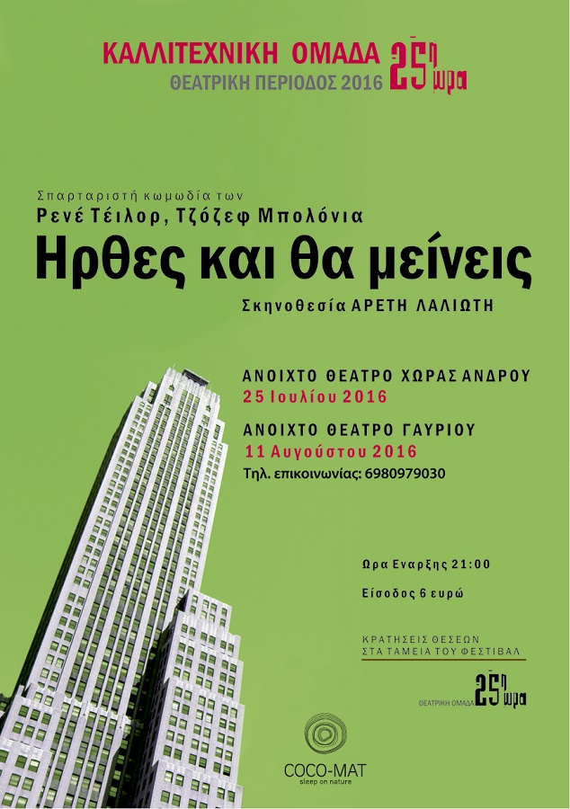 Μια παράσταση της θεατρικής ομάδας 25η Ώρα η οποία θα δοθεί στο ανοικτό θέατρο Άνδρου την Δευτέρα 25/7.