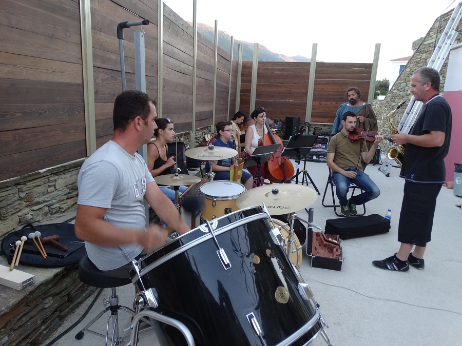 Ο Νίκος Ψαριανός διδάσκει την μουσική. Η παράσταση θα έχει ζωντανή μουσική που συνέθεσε ο Ν. Ψαριανός (φωτο: Εν Άνδρω)..