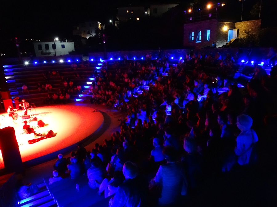 Και πάνω από το όμορφο ανοιχτό θέατρο ένα σιωπηλό φεγγάρι στη χάση του. Άλλο ταξίδι αυτό (φωτο: Εν Άνδρω).