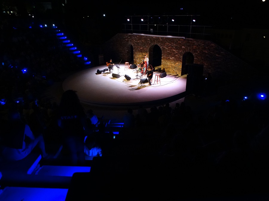 Το εξαιρετικό με το ανοιχτό θέατρο της Χώρας είναι πως δημιουργεί από μόνο του μια ζεστασία στους ερμηνευτές, αλλά και μια οικειοτητα στους θεατές. Το ίδιο έγινε και χτες (φωτο: Εν Άνδρω).