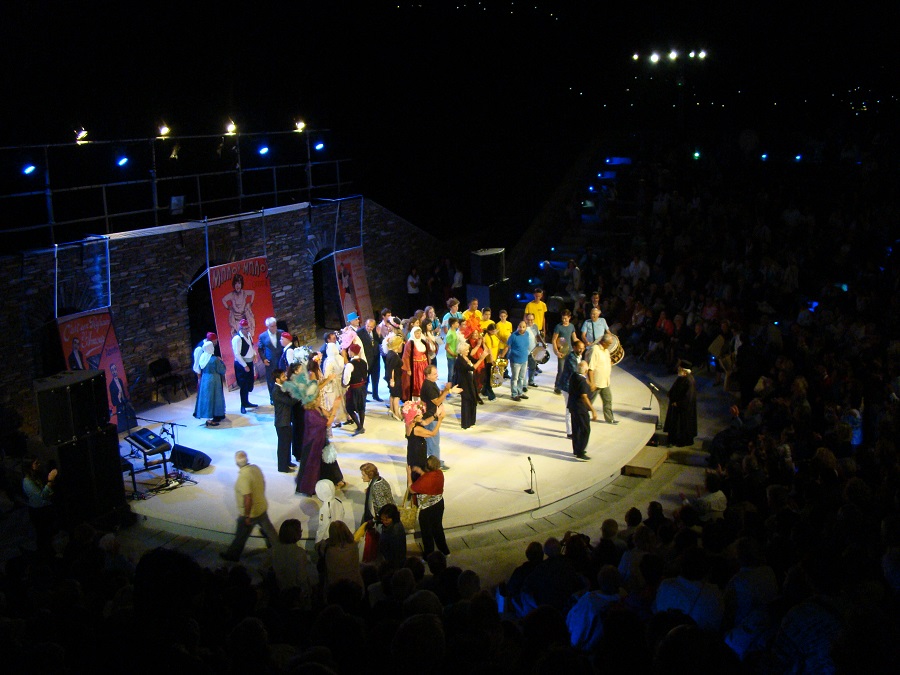 Και η παράσταση τελειώνει με όλους επί σκηνής: παραθεριστές, κάτοικοι, μέτοικοι, παλιοί κάτοικοι/σημερινοί παραθεριστές, Ήταν η πρώτη παράσταση που πλειοψηφούσαν παλιοί κάτοικοι-σημερινοί παραθεριστές. Άρα μπορεί να υπάρξει ίσως ki ένας ερασιτεχνικός θίασος που να ξεκινά με σημείο αναφοράς παλιές παρέες (κυρίως της Χώρας). Άνθρωποι που ζουν ολοχρονίς μακριά από την Άνδρο και συνάμα θα έχουν κυρίως το καλοκαίρι μια πολιτιστική δραστηριότητα στο νησί!!! Eνδιαφέρουσα μια τέτοια δράση (φωτο: Εν Άνδρω).