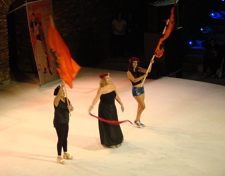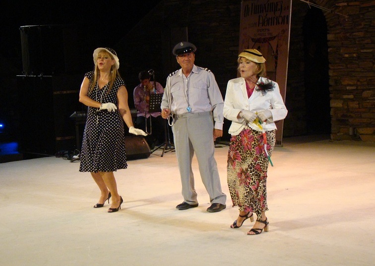Μερικές φορές η ιστορία μπερδεύει ή μπερδεύεται με ...τις φούστες! Έτσι στην εποχή του Πάγκαλου που ήταν μακριές οι φούστες και οι αστυνομικού κυκλοφόρουσαν και μετρούσαν πόντους! Όπως σε αυτό το νούμερο τηα παράστασης... (φωτο: Εν Άνδρω).