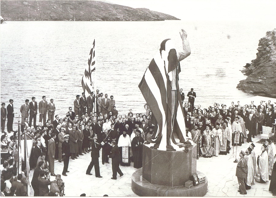 Τα εγκαίνια του αγάλματος του Μιχάλη Τόμπρου το 1958 από τον τότε βασιλιά Παύλο (αρχείο Foto Andros)