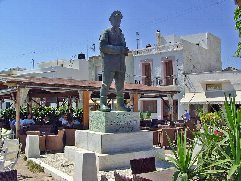 Ο Καρδαμυλίτης Ναυτικός στα Καρδάμυλα της Χίου. Το άγαλμα παρά τις αντιρρήσεις του Απάρτη τοποθετήθηκε στην πλατεία του μικρού λιμανιού. Αργότερα προστέθηκαν και τα τραπεζοκαθίσματα δίνοντας ένα καθαρά τουριστικό ντεκόρ στο άγαλμα.. (φωτ. διαδικτύου).