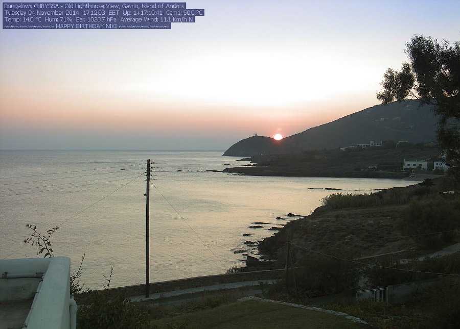 Μέχρι σήμερα έχω εγκαταστήσει και συντηρώ προσωπικά τέσσερις διαδικτυακές κάμερες στο νησί μας, δύο εξ αυτών στο Γαύριο και άλλες δύο στο Μπατσί, και ελπίζω να μου δοθεί η ευκαιρία για ακόμη περισσότερες στο εγγύς μέλλον…