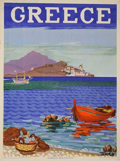 Από το 1930και μέχρι το τέλος της δεκαετίας του'70οι τουριστικές αφίσες της χώρας αφήνονται στα έμπειρα χέρια μεγάλων ονομάτων:Μόραλης, Τέτσης, Μυταράς, Φασιανός, Τσόκλης, Takis, Βασιλείου, Βακιρτζής, Βυζαντίου, Ορφανού, Βήττου, Περράκη, Κωστόπουλος, Λιάσκας, είναι μόνο μερικοί από τους μεγάλους καλλιτέχνες που δέχονται την πρό(σ)κληση του ΕΟΤ να απεικονίσουν την Ελλάδα του ατελείωτου καλοκαιριού, του φωτός, της θάλασσας και του λαϊκού πολιτισμού.