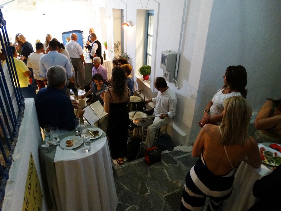 Και μουσική, αλλά και μπουφές για όσους προσήλθαν ή όσους πέρασαν. Και επειδή η γκαλερί είναι σε πέρασμα πέρασαν αρκετοί (φωτ. Εν Άνδρω).