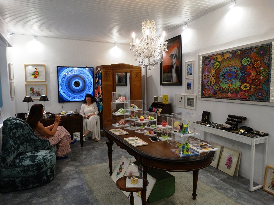Γενικη άποψη της έκθεσης στην γκαλερί "HeArt" της Πηνελόπης στο Μπατσί (φωτ. Εν Άνδρω).