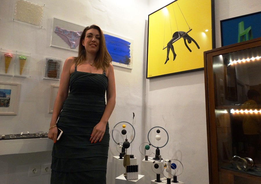 Όλα τα ωραία μαζί. Οι πίνακες, τα γλυπτά και η κοπέλα... (φωτ. Εν Άνδρω).