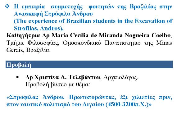 20/7: παρουσίαση του Στρόφιλα, της αρχαιότερης πόλης της Ευρώπης - Θα ακολουθήσει νησιώτικο πρόγραμμα.