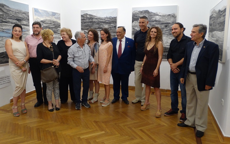 Οι καλλιτέχνες που παρουσιάζονται στην εφετινη έκθεση και οι συντελεστές του Ιδρύματος Κυδωνιέως (φωτ. Εν Άνδρω).