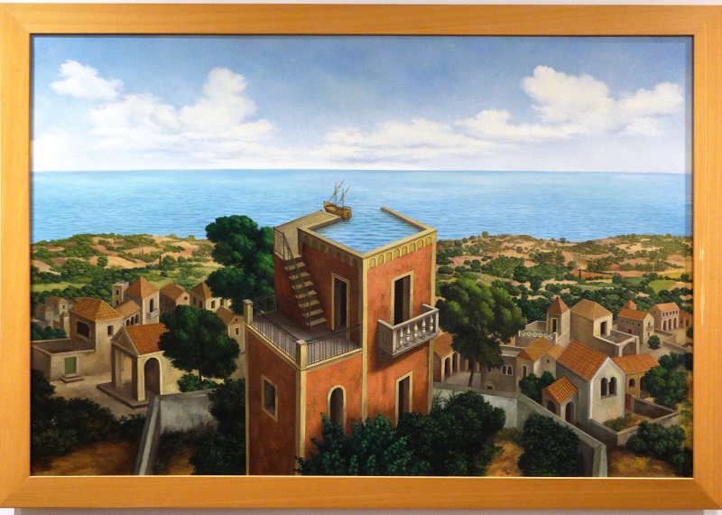 Ποιός κοιτά ποιόν; Ο Σαββόπουλος τους πίνακες; Οι πίνακες τον Σαββόπουλο; Ή, μήπως εμείς που κοιτάμε τον Σαββόπουλο που κοιτά τους πίνακες; (φωτ. Εν Άνδρω).