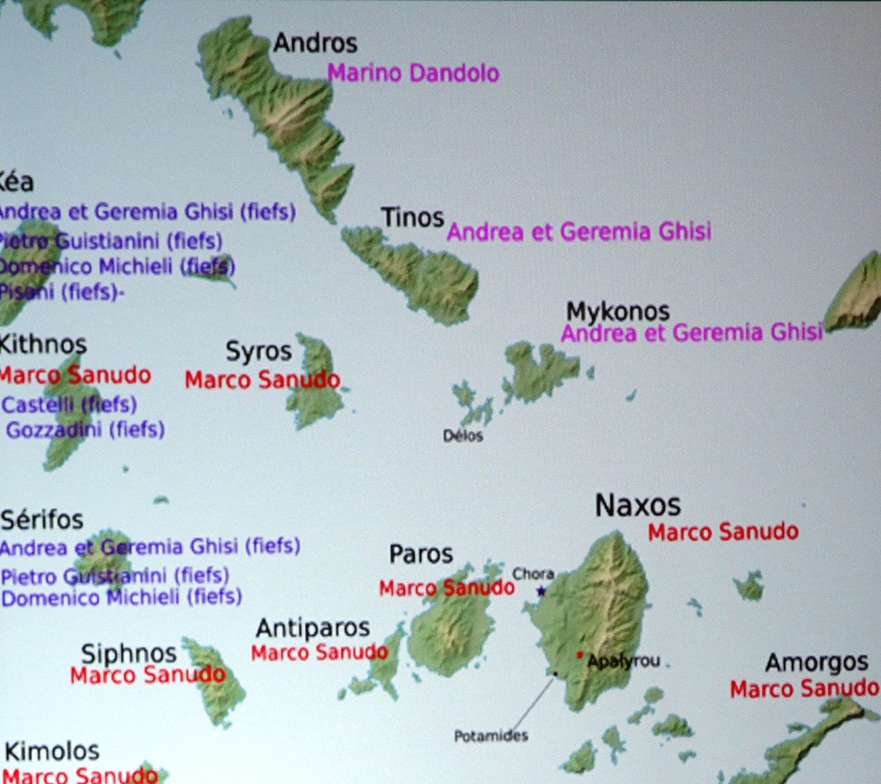Ως συνέπεια της άλωσης της Πόλης η Άνδρος πέφτει στο μερίδιο ενός φωτισμένου βενετού ηγεμόνα του Μαρινου Δάνδολου. Τον Μαρινο Δάνδολο ακολούθησε στην Άνδρο της εποχής ο Περαί ντε Καρνινάλ με την Εσκλαμόντ όπου έζησαν λίγους μήνες πριν ξαναφύγουν για νοτιοδυτική Γαλλία.