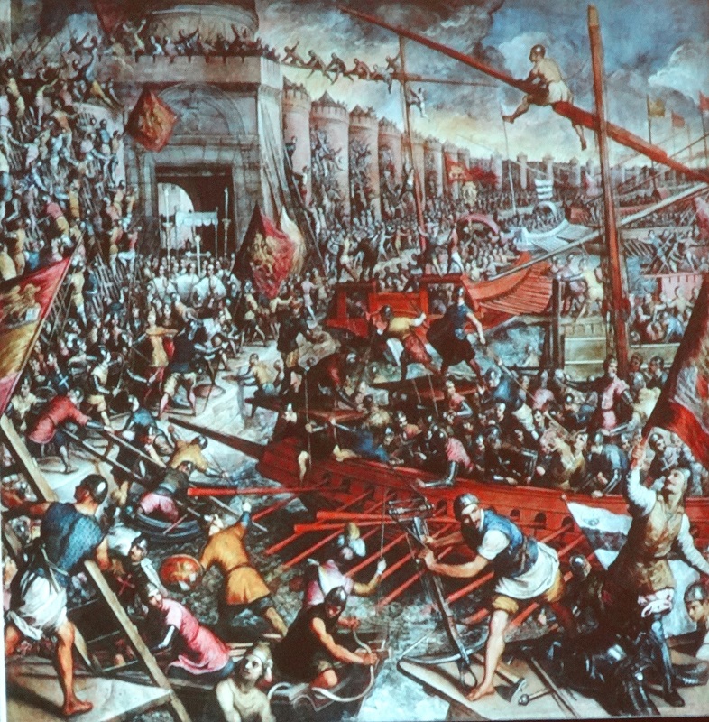Και γίνονταν πολλοί πόλεμοι τότε - όπως και τώρα - σε διάφορα μέρη της Ευρώπης. Εδώ η Τέταρτη Σταυροφορία. Ένας από τους μεγάλους πολέμους. Εδώ η πολιορκία της Κωνσταντινούπολης από τους σταυροφόρους... Το βιβλίο περιγράφει - μέσω της αφήγησης του Περαί ντε Καρδινάλ - σκηνές συγκλονιστικές από την άλωση...