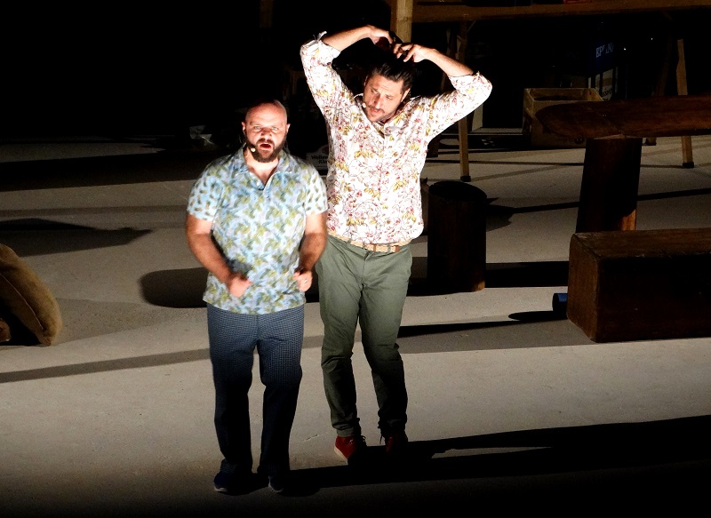 Μπορεί το έργο της συγγραφέως και η απόδοση στα ελληνικά του να είναι εξαιρετικά όμως δεν θα΄ηταν και πολλά πράγματα χωρίς τους δύο προικισμένους ηθοποιούς του θεάτρου του Νέου Κόσμου, τον Μάκη Παπαδημητρίου και τον Γιώργο Χρυσοστόμου. Και βεβαίως την εξαιρετική σκηνοθεσία,τους (φωτ. Εν Άνδρω).