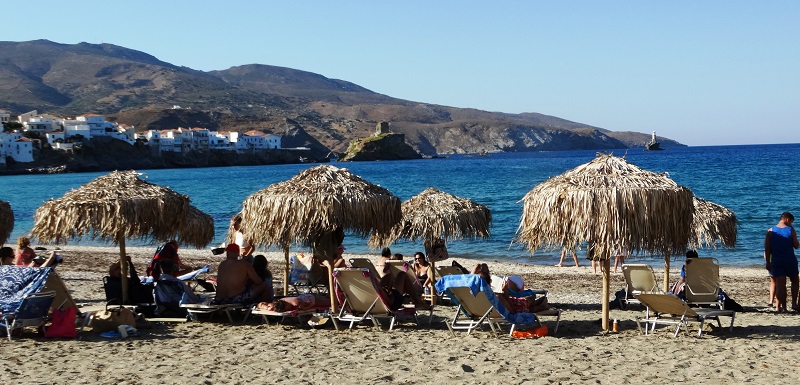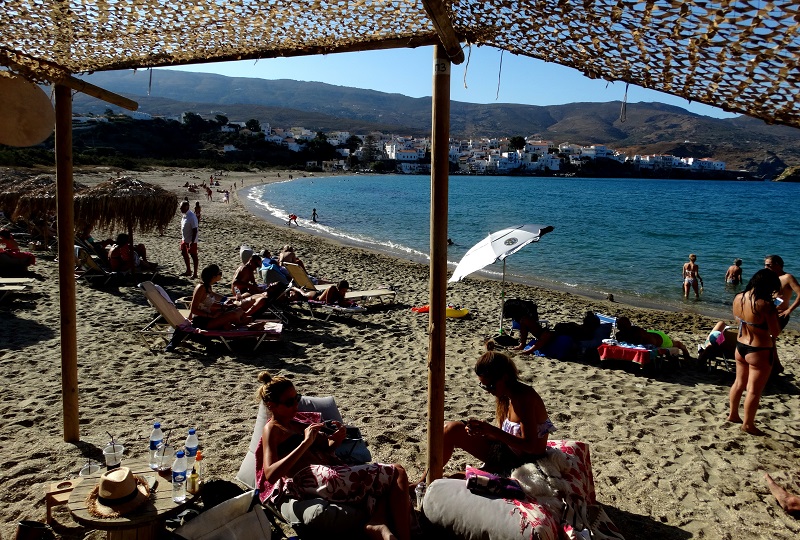 Ένα πιο κοντινό ζουμ και η θέα εμπλουτίζεται με νέες που λιάζονται κι νέους που βουτάνε στη θάλασσα. Τι πιο καλοκαιρινό θέαμα διακοπών και καλοκαιρινής φυγής... (φωτ. Εν Άνδρω).