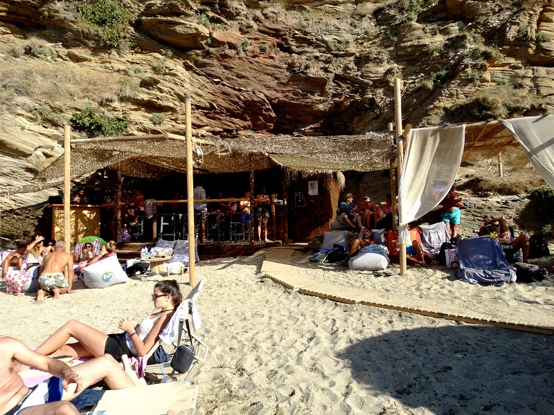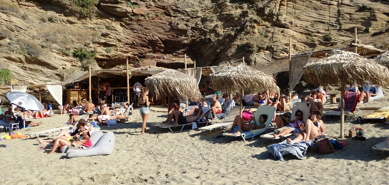 Τόσο ροκ περιβάλλον μέσα στο οποίο δεκάδες με ψαθινες ομπρέλες και χωρίς ομπρέλες λιάζονταν με τις ώρες. Μιλάμε για ροκοκατάσταση που έλεγε και ο Χαλάς... Που βρέθηκε τόσος κόσμος στο Παραπόρτι είναι να απορείς. Από το τίποτα οι δύο συναιτέροι έφτιαξαν μια παραλία λιγο εξωτική, λίγο ροκ με πολύ κόσμο που δεν θα πήγαινε ποτέ στο Παραπόρτι αν δεν ήταν ο βράχος που έγινε "Rock"... (φωτ. Εν Άνδρω).