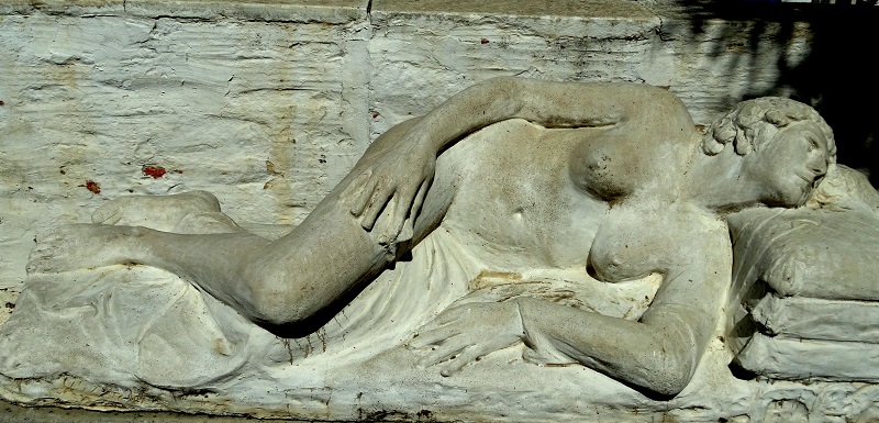 "Η αναπαυομένη", έργο του 1931 του Γιαννούλη Χαλεπά (1851-1938). Άγαλμα μνημειακών διαστάσεων, που "συμπυκνώνει της αναζητήσεις της γλυπτικής του 20ου αιώνα". Στον κήπο του σπιτιού/μουσείου του μεγάλου γλύπτη (φωτ. Εν Άνδρω).