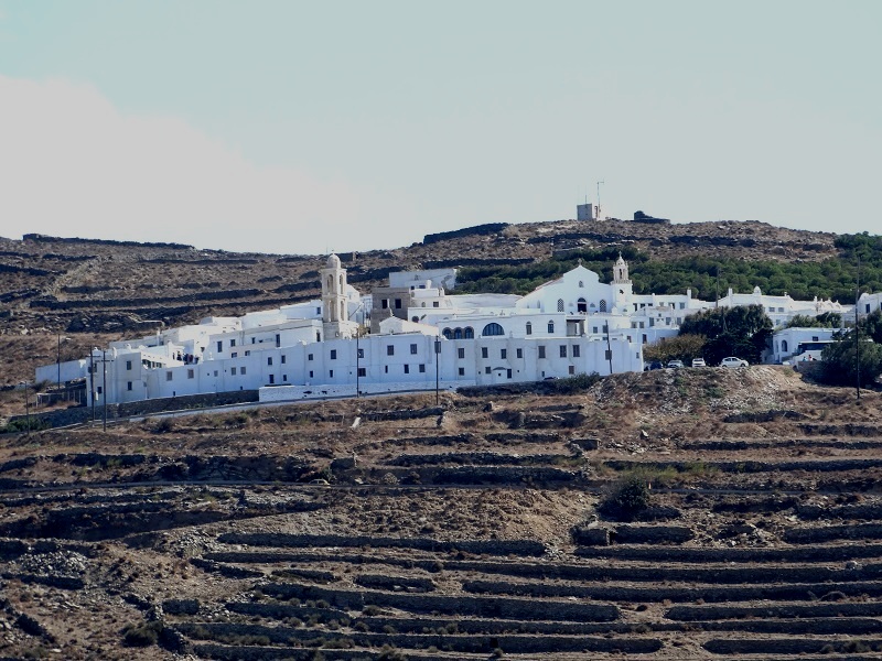 Το δεύτερο ιστορικό μοναστήρι της Τήνου, της Αγίας Πελαγίας. Δεσπόζει πάνω από την Χώρα (φωτ. Εν Άνδρω).