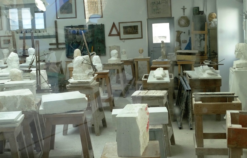 Ένα από τα εργαστήρια της Σχολής Καλών Τεχνών Πανόρμου στον Πύργο. Εδώ οι μαθητές της Σχολής μαθαίνουν γλυπτική (φωτ. Εν Άνδρω).
