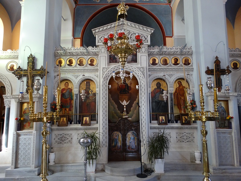 Εκπληκτικό μαρμάρινο κέντημα σε τέμπλο του Πύργου. Το εξαιρετικό σχέδιο είναι του αρχιτέκτονα Γ. Χαλεπά, πατέρα του μεγάλου έλληνα γλύπτη (φωτ. Εν Άνδρω).