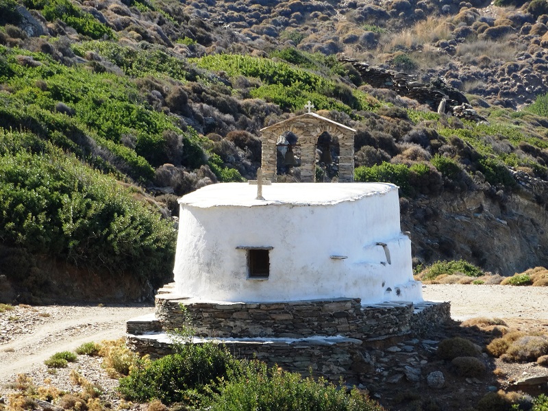 Το μικρό γοητευτικό ξωκλήσι πάνω στον χωματόδρομο που ενώνει την Βόρη με τον χωματοδρόμο για τα Άχλα (φωτ. Εν Άνδρω).