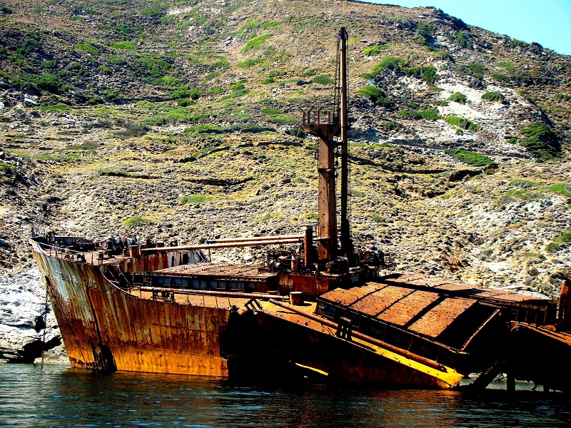 To SEMIRAMIS όπως ήταν το καλοκαίρι του 2015. Εμφανής η γρήγορη φθορά που επέφερε η θάλασσα την τελευταία διετία στο ναυάγιο αν συγκρίνουμε την παραπάνω φωτογραφία με αυτή του 2017 (φωτ. Εν Άνδρω).