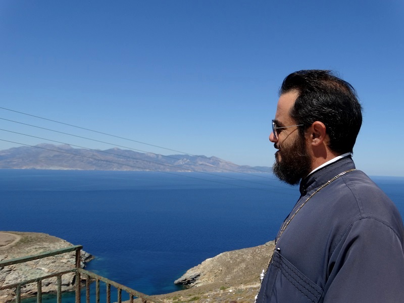 Φτάνοντας στον φάρο ο παπα-Παναγιώτης, ο εφημέριος του Μακτοταντάλου, έμεινε ώρα να αγναντεύει το πέρασμα και την Εύβοια απέναντι (φωτ. Εν Άνδρω).