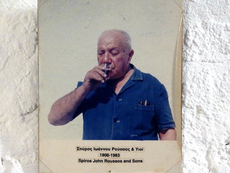 Ο παππούς της οικογένειας. Καθορστική η συμβολή του κατά τον 20ο αιώνα στην εξέλιξη της "Κάναβας Ρουσσου". Η φωτογραφία του με ένα ποτήρι κρασί δεσπόζει στον χώρο για να θυμίζει κάτι από την ιστορία και της ζωή του εξαιρετικύ χώρου στους επισκέπτες (φωτ. Εν Άνδρω).