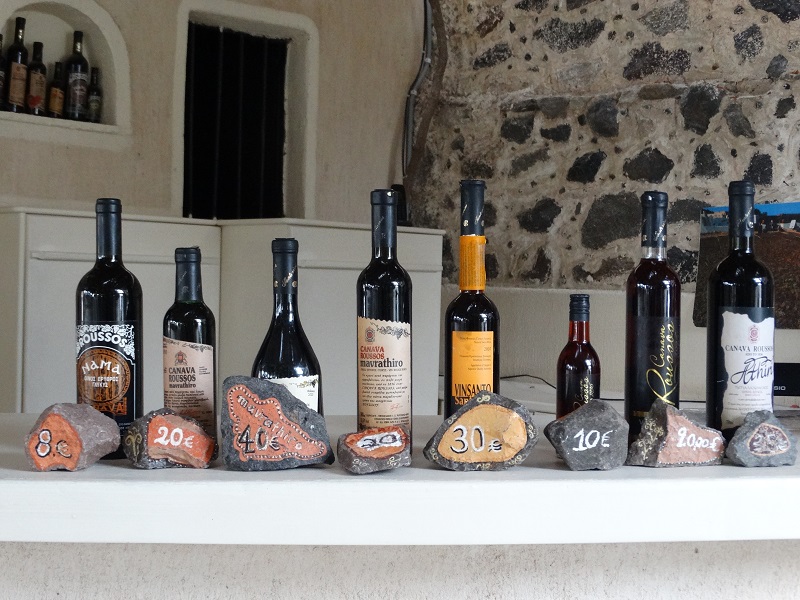 Μερικά από τα παλαιωμένα κρασιά που πουλά η "Κάναβα Ρούσσου". Ανάμεσα τους και το περιφημο "βινσάντο" (φωτ. Εν Άνδρω).
