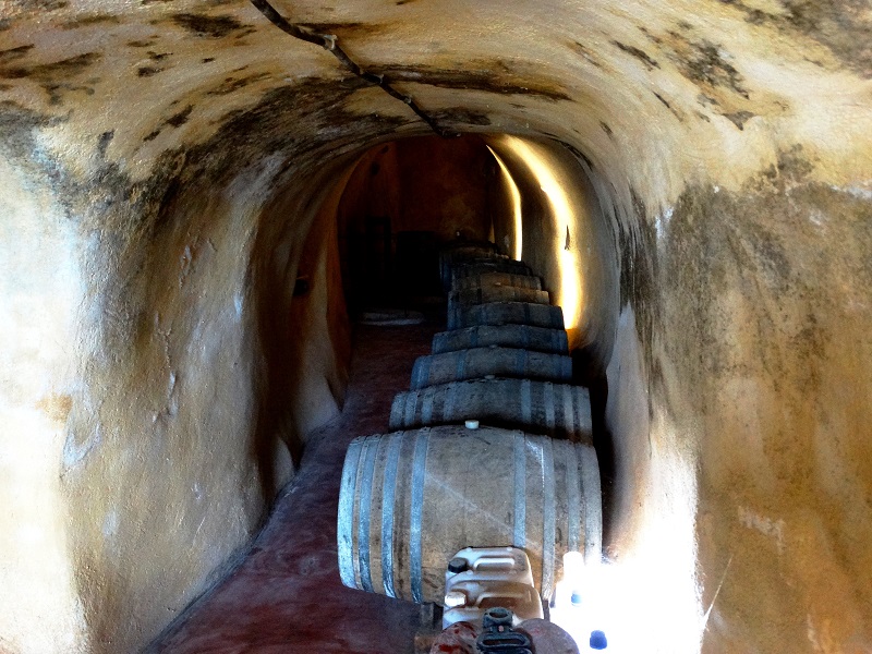 Ο χώρος ωριμανσης και φύλαξης του Βινσάντο. Δίπλα ο χώρος που φυλάσσεται το τελευταίο κρασί του παππού Γιάννη Ρουσσου από το 1980 (φωτ. Εν Άνδρω).