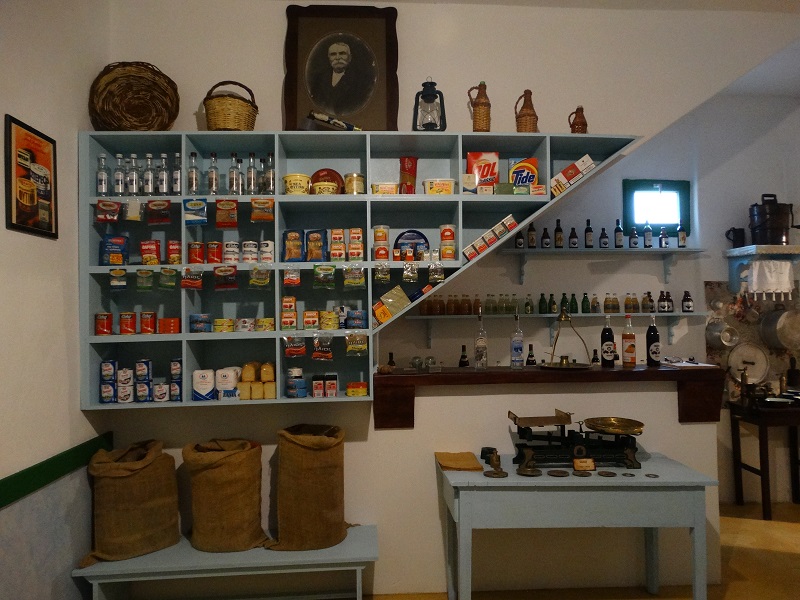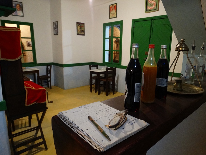 Και φυσικά μερικές καρέκλες και τραπέζια καφενείου μιας και τα παλιά χρόνια μπακάλικα και καφενεία στα χωριά ήταν ένα. Μέχρι και ανοικτό τάβλε και το τεφτέρι με τα γυαλιά του μαγαζάτορα. Εκεί για ένα ποτηράκι ούζο ή τσικουδιά. Όπως όλα τα καλά ποτά θέλουν και το ούζο στην Σανρορίνη το σκηνικό του.. (φωτ. Εν Άνδρω).