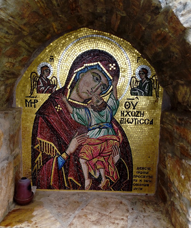 Για να φτάσεις στο μοναστήρι - που είναι χωμένο μέσα στον βράχο - πρέπει να ανέβεις 200 σκαλιά! Τόσα μέτρησε ο φίλος και συνεργάτης μας! Και μόνο η φωτογραφία του αρκεί να σε εντυπωσιάσει. Όπως σε εντυπωσιάζει και η εξαιρετική εικόνα της Παναγίας από ψηφιδωτό μέσα στον βράχο.