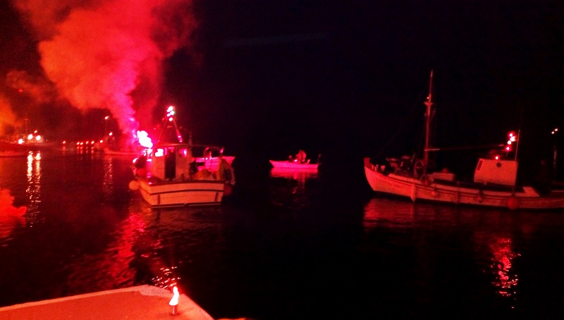 Το εντυπωσιακό είναι πως στην περιφορά του γύρω από το λιμάνι ακολουθούν την περιφορά του όλα τα καΐκια του χωριού. Και η κατάληξη ακόμα πιο εντυπωσιακή όταν ο Επιτάφιος μπήκε στο πλοίο "Σκοπελίτης" που είναι το αγαπημένο βαπόρι των Μικρών Κυκλάδων, στις οποίες ταξιδεύει με όλους τους καιρούς χειμώνα-καλοκαίρι.