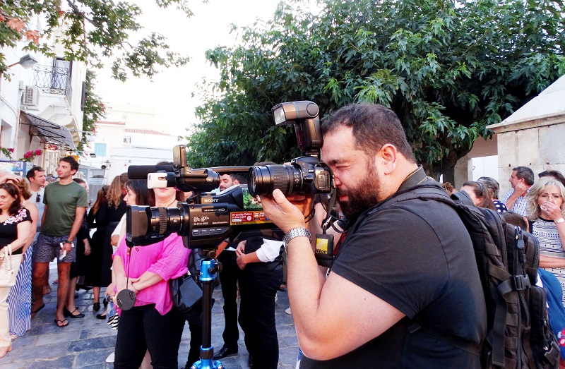 Και ο Κώστας Σαρρής με τις κάμερες και τον κάμεραμαν, τον Νίκο. Και κάπου εκείμ κι εμείς που σας ιστορούμε το γεγονός...(φωτ. Εν Άνδρω)