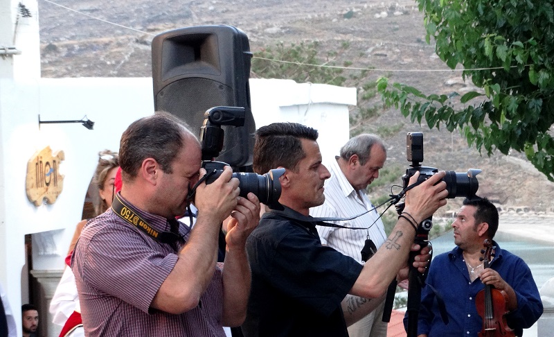 Εκεί και οι φωτορεπόρτερ του νησιού. Ο Χρυσοβαλάντης με τις κάμερες του (φωτ. Εν Άνδρω).