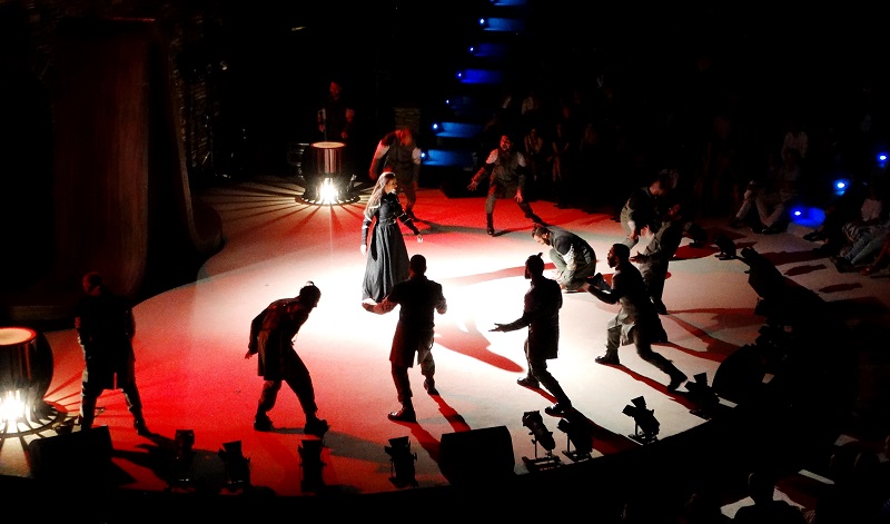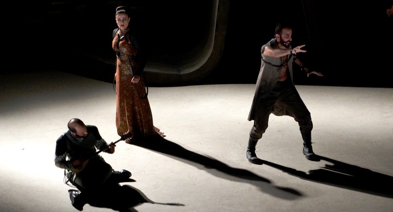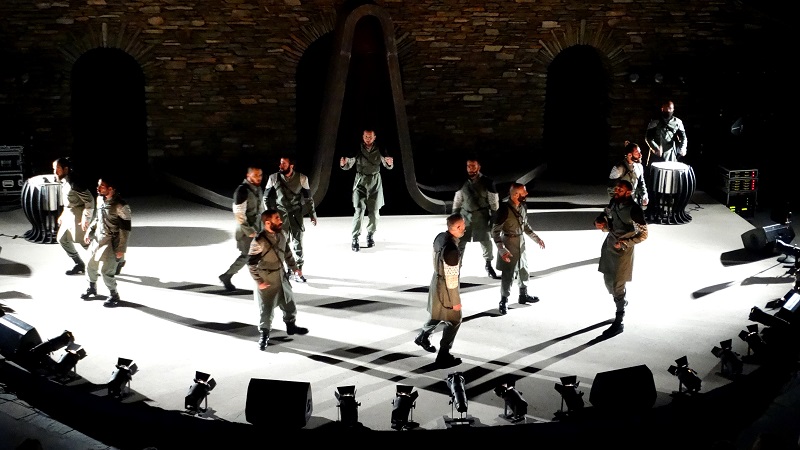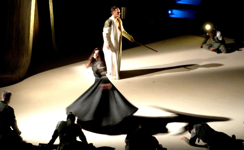 Απίστευτο και εξαιρετικό το στροβίλισμα/χορός της Καραμπέτη όση ώρα διάρκεσε ο διάλογος με το νεκρό βασιλιά Δαρείο... (φωτ. Εν Άνδρω).