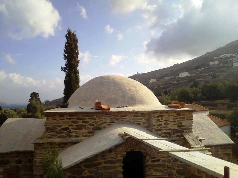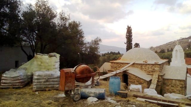 Ξεκίνησαν χθες οι εργασίες συντήρησης και ανάδειξης του ιστορικού ναού του Αγ. Ιωάννου Θεολόγου Κορθίου. Πρώτη εργασία η επικεράμωση του τρούλου και των σκεπών του με βυζαντινού τύπου κεραμίδια και κονιάματα. Εργασία απολύτως απαραίτητη για να στεγαστεί και μονωθεί σωστά ένα από τα σπουδαιότερα πρωτοχριστιανικά μνημεία της Άνδρου.