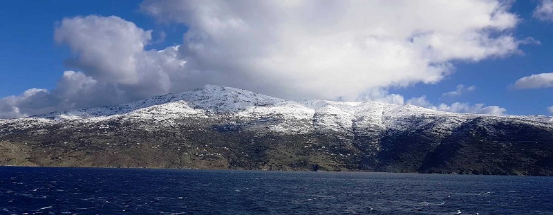 Το πλοίο συνεχίζει προς Τήνο. Το χιόνι υποχωρεί σταδιακά, καθώς ταξιδεύει νότια. Μια τελευταία ματιά πριν τα χιόνια της Άνδρου χαθούν και το πλοίο μπει στο Στενό που χωρίζει τα δύο νησιά στην κορυφή των Κυκλάδων. Μια ακόμα διαδρομή που αποτύπωσαμε με τον τρόπο μας στο Εν Άνδρω για εσάς που είστε είτε στο νησί ή όπου αλλού και θέλατε να έχετε μερικές από τις εικόνες αυτής της ξεχωριστής μέρας (φωτ. Εν Άνδρω).