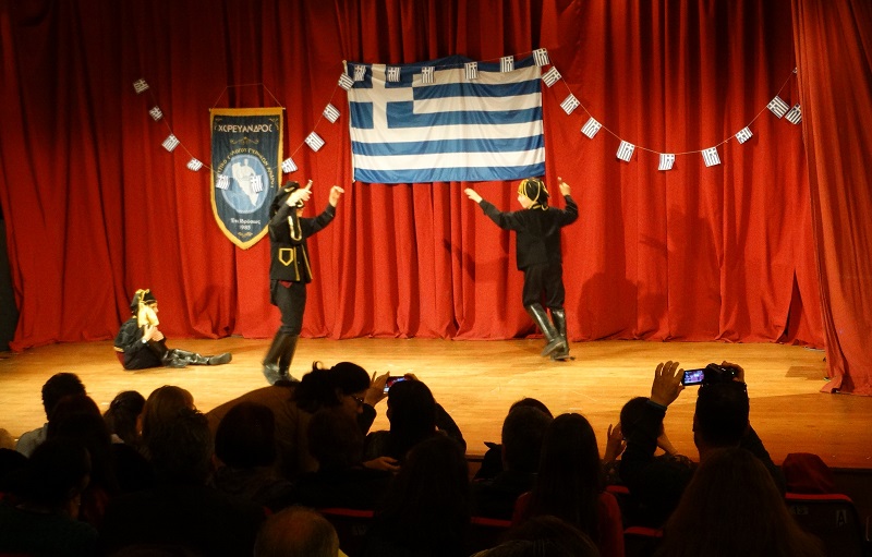 Παρούσα πάλι η Μακεδονία στους χορούς. Οι μισοί χορευτές ντυμένοι με μακεδονικές φορεσιές χόρεψαν και μακεδονικούς χορούς και καταχειροκροτούμενοι από τους θεατές. Θεατές που συγκινήθηκαν και που μάλλον δεν ήταν "φασίστες" όπως με ευκολία αποκαλούν όλους όσους συγκινούνται οι "διεθνοπώλες" (αυτοί που πουλάνε με το καντάρι "διεθνισμό" έχοντας βγει από τα σύνορα μόνο για τουρισμο) και "διεθνοκάπηλοι" (πουλάνε με το στρέμμα κάθε είδους διεθνιστική πολιτική ορθότητα) που κυβερνούν "ισοπεδώνοντας τα όλα"... (φωτ. Εν Άνδρω).