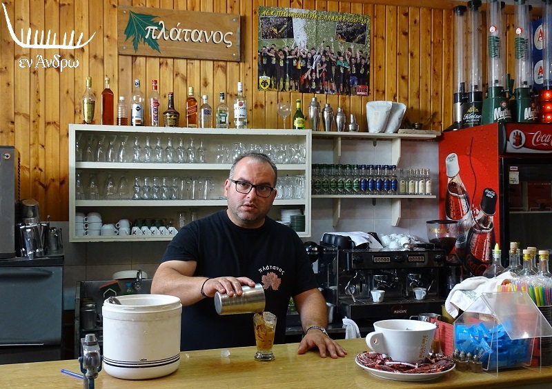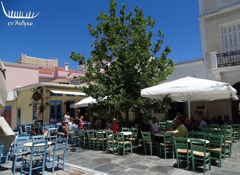 Ο χώρος των τραπεζοκαθισμάτων τους κοινός. Κι αρμονικά μοιρασμένος. Ο πλάτανος αν και βρίσκεται στην μια μεριά ρίχνει την ευεργετική σκιά του και στους δύο μαγαζάτορες που χωρίζουν τους χώρους του με το διαφορετικό χρώμα των καρεκλών τους. Πράσινο για τον Πλάτανο. Μπλε για τη Νοσταλγία. Ούτε τείχη, ούτε φράγματα. Έχουν μοιράσει αρμονικά και τον χώρο δίπλα στην παλιά πέτρινη βρύση. Όπως θα μοιράσουν αρμονικά και το κόστος. Κι επειδή δουλεύουν αρμονικά βρήκαν και χορηγούς για την εκδήλωση που κι αυτοί κάτι θα προσφέρουν. Κι επειδή στο σύγχρονο κόσμο εκτός του ανταγωνισμού υπάρχει και εταιρική ευθύνη μέρος των εσόδων θα διατεθεί στο Κέντρο Υγείας Άνδρου. Αυτές είναι πρωτοβουλίες που ενώνουν και απλώνουν την Άνδρο. Ο πλάτανος ενώνει και προκόβει...