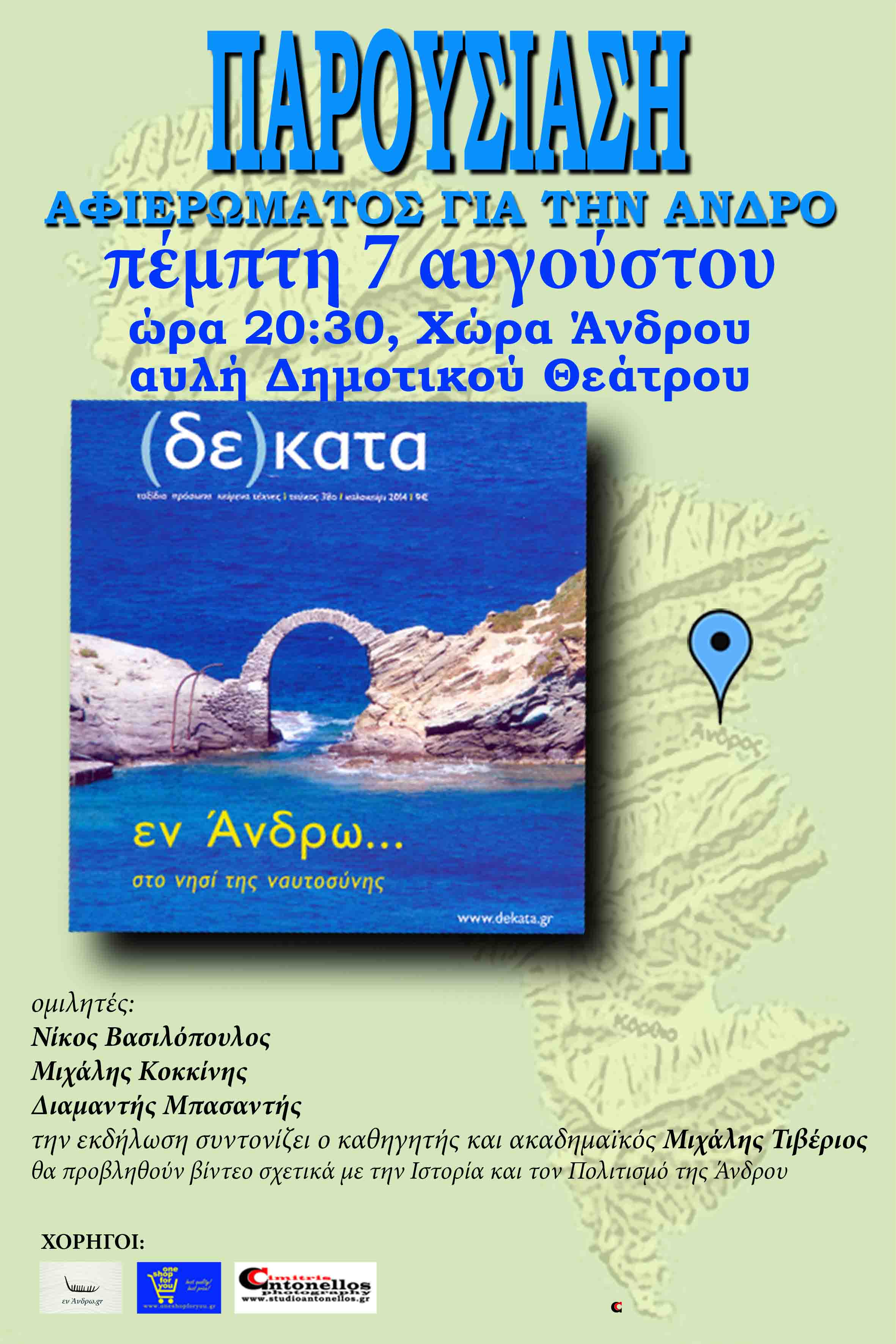 Πέμπτη 7/8, Χώρα - Παρουσίαση αφιερώματος για την Άνδρο