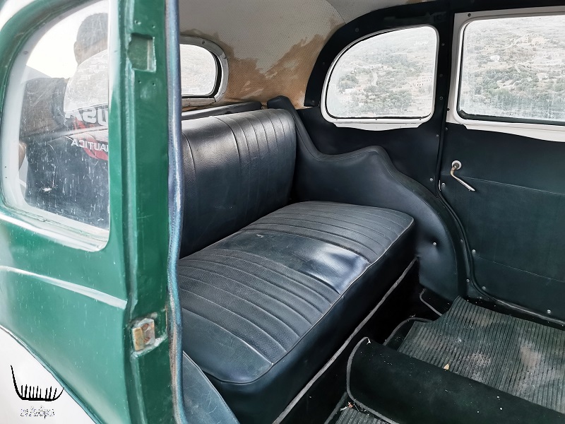 Στο εσωτερικό του οι εμπρός δύο θέσεις είναι διαχωρισμένες με συρόμενο τζάμι από τις πίσω πέντε θέσεις. Ότι πρέπει για την σημερινή εποχή της πανδημίας που πρέπει να κρατιούνται οι αποστάσεις. Όπως βλέπετε σε αυτό το αμάξι τις κρατούσαν από παλιά. Άλλες εποχές, άλλες αποστάσεις θα πείτε...