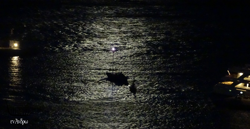 Μια ακόμα πανοραμική λήψη του "μπουρλότου" και του συνοδευτικού σκάφους υπό το φως της υπέροχης πανσελήνου του Αυγούστου...
