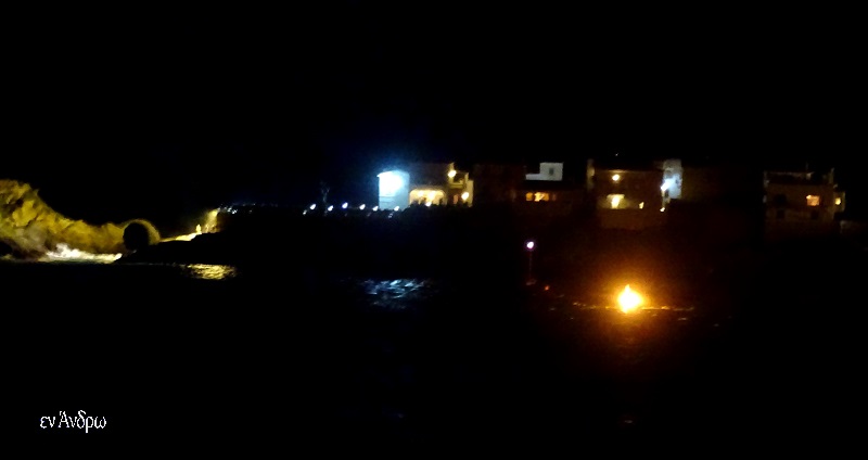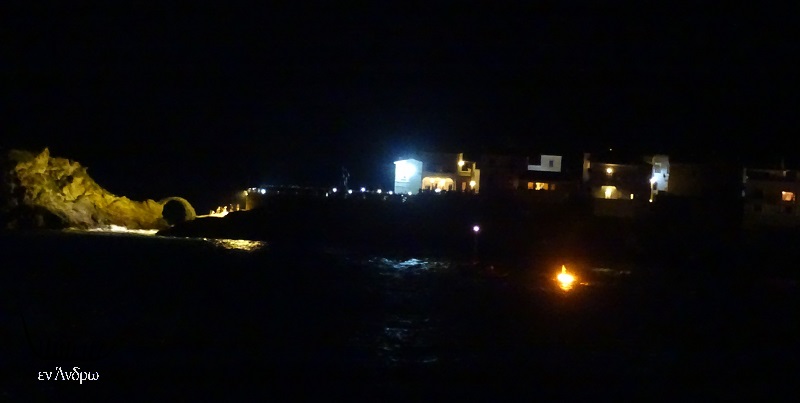 Κατεβαίνοντας στο σημείο μηδέν, όπου θα κάναμε τις γενικές λήψεις της βραδιάς, συνδυάζοντας την ιστορία με την φύση, πήραμε μια ακόμα φωτογραφία της πανσελήνου, του Τουρλίτη και κάτι από τον Κάβο Σταρά της Άνδρου. Η βραδιά παρά το φρεσκάρισμα του μελτεμιού - που απαγόρευσε όλα τα πυροτεχνήματα που είχαν προγραμματιστεί κι έμειναν μόνο οι φωτοβολίδες κρότου λάμψης - προμηνυόταν ωραία. Το μελτέμι απλώς θα δυσκόλευε λίγο την "παραγωγή", τις λήψεις και τους θεατές. Αλλά αυτή είναι η καλοκαιρινή Άνδρος αυτή την εποχή...