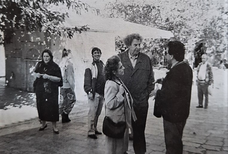 Ο Μίκης Θεοδωράκης στην παραπάνω φωτογραφία στην οικία του Σάκη Τόδουλου και της Μίνας Πολέμη-Τόδουλου στη Χώρα της Άνδρου τον Οκτώβριο του 1995. Μαζί του η σύζυγός του Μυρτώ. Διακρίνεται η Μαρία Φαραντούρη και οι οικοδεσπότες Σάκης και Μίνα Τόδουλου...