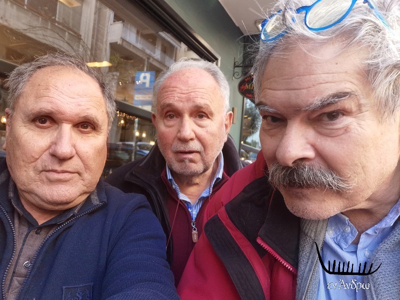 Είμαστε τρεις που βρεθήκαμε πάλι γύρω από τον πολιτισμό και μιλάμε για λογοτεχνία και μουσική. Η συζήτηση ολοκληρώνεται με τον Άγγελο να εξηγεί πως η ζωή στην Άνδρο έχει και απρόβλεπτα. Όπως π.χ το να φτιάχνει χώρο για τρία ζώα που βρήκαν καταφύγιο στο κτήμα του με τον χιονιά και βάλθηκε να τα φροντίζει αυτός και η γυναίκα του. Κλείνουμε το τηλέφωνο γελώντας...
