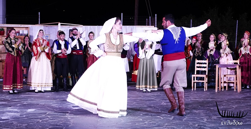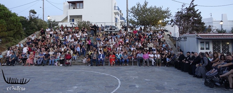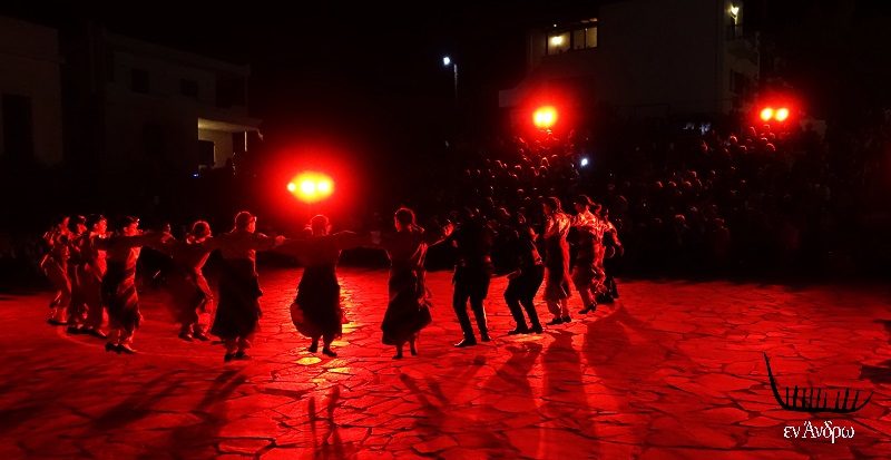 Ήταν η μεγάλη μεγαλύτερη ετήσια μουσικοχορευτική παράσταση της Άνδρου. 500 τουλάχιστον θεατές, παρακολούθησαν περίπου 150 χορευτές - όλων των ηλικιών - να χορεύουν σε παραδοσιακούς σκοπούς και τραγούδια από διάφορα μέρη της Ελλάδας. Μικροί και μεγάλοι χόρεψαν χορούς: ανδριώτικαυς, ναξιώτικους, ικαριώτικους, ποντιακούς, μακεδονίτικους, πελοποννήσιους, κρητικούς. Επί δίωρο όλα αυτά μέσα σε ένα διαρκές ξετύλιγμα εικόνων και αφηγήσεων. Σαν σε ημερολόγιο. Από τις πρώτες μέρες στο σχολείο - με σχολικούς χορούς - μέχρι την περιδιάβαση εικόνων και χορών από τον Πόντο και την Πελοπόννησο και μέχρι την Μακεδονία και την Κρήτη.