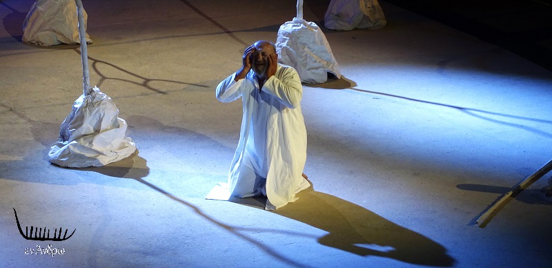 Αν η παράσταση ξεκίνησε με ρυθμό και απόδοση του λαμπρού κειμένου στο σημείο αυτό πετυχαίνει την κορύφωση της με την ερμηνεία του αφηγητή στην περιγραφή του απόντος από την σκηνή γεγονότος...